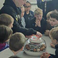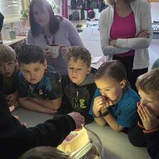 Today, a few classes came in to see him "candling" the eggs which shows the chicks growing inside. The students were very engaged and had a lot of great questions for Mr. Colegate.