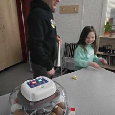 Mr. Colegate brought in eggs from his chickens and they're currently in the incubator. They are scheduled to hatch on April 23/24th.