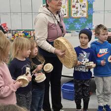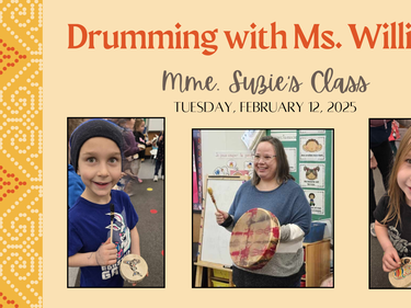 It is with great excitement that the French Immersion Kindergarten class got to be the first to use drums with Ms. William on Wednesday February 12th. Mrs. Bolin, Quesnel Director of Instruction and Mr. Tate, Principal of our school, joined our class for the event.
