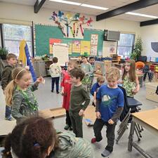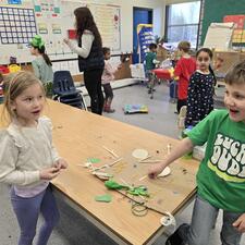 Check out the kids entering their classroom to find the Leprechaun's chaos: