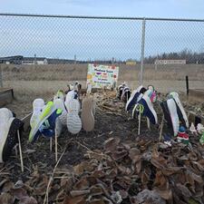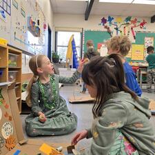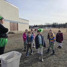 On Thursday, Mme Suzie's class made Leprechaun traps with the Grade 6 & 7's in preparation for his arrival the next day! We entered the classroom this morning to find our traps destroyed and gold coins stolen! He even left pieces of his beard behind that were caught in the traps. As you will see, the kids realized very quickly that the Leprechaun stole their inside shoes! At recess, we discovered them in the garden full of gold chocolate coins!!