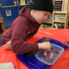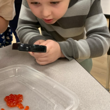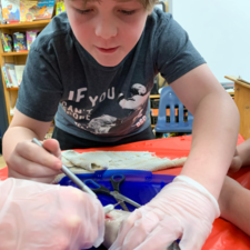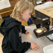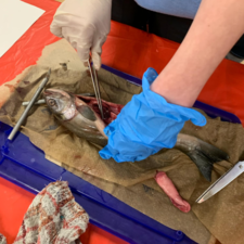 Students enjoy using scalpels (older students only!), microscopes, and tweezers to check out our salmon anatomy more closely. This year, the grade 6/7 students were able to conduct independent dissections on several jack salmon which were provided for us, along with our two fully mature adults, by the Baker Creek Enhancement Society.