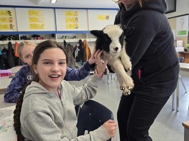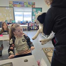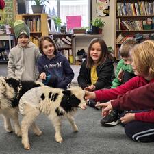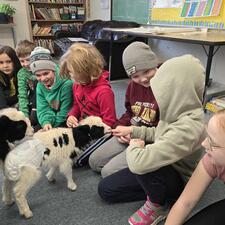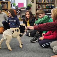 Breadcrumb Home News Stories news Show and Tell with Lambs! March 4, 2024 We had a wonderful visit from two lambs today! They were brought in by one of our students, for show and tell, to share what it's like to raise sheep and care for them.