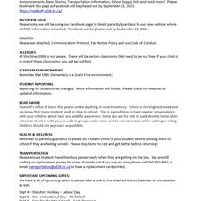 Welcome Back Newsletter